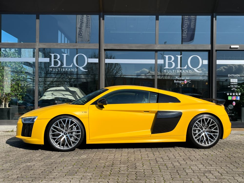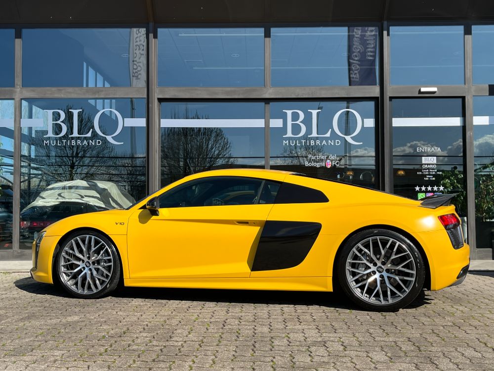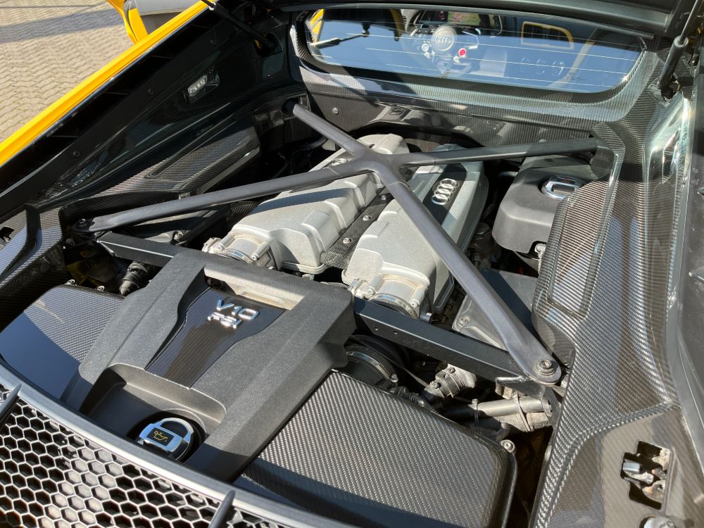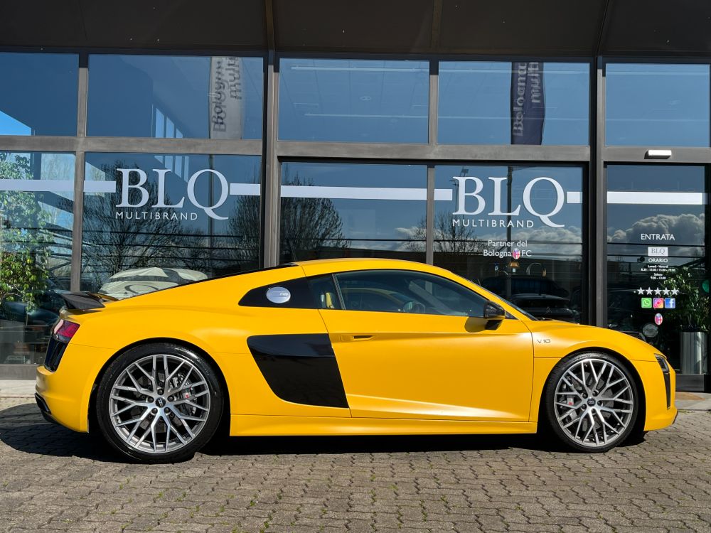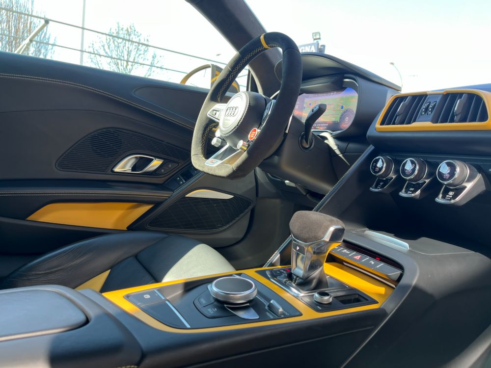 AUDI EXCLUSIVE, Vernice Speciale Giallo Vegas Opaco, Cerchi in Lega da 20′, Freni Carboceramici, Terminali di Scarico Capristo, Fari Laser Matrix, Spoiler Anteriore e Posteriore in Carbonio, Tetto Trapuntato in Alcantara con Cuciture a contrasto gialle, Volante Sportivo in Alcantara, Audi smartphone interface, Audi virtual cockpit, Sedili in Pelle regolabili elettricamente con supporto Lombare, Sedili Riscaldabili, Impianto Audio Bang & Olufsen, Apple Car Play & Android Auto, Drive Select, Sistema di carica smartphone Wireless, Documentazione Service, Km. Certificati, Set Chiavi Completo.