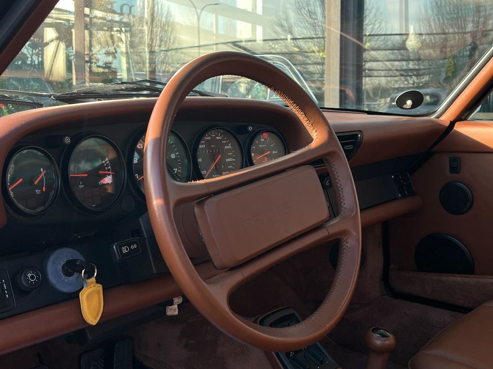 VETTURA UFFICIALE PORSCHE, CERTIFICATO DI RILEVANZA STORICA E COLLEZIONISTICA, Verde Abete Metallizzato ( TANNENGRUEN MET.), Tettuccio Apribile, Spoiler Posteriore Estraibile Elettricamente, Cerchi in Lega da 16′, Sedili in Pelle Regolabili Elettricamente, Climatizzatore, Autoradio Originale Porsche, Book Originale Porsche, Doppie Chiavi.